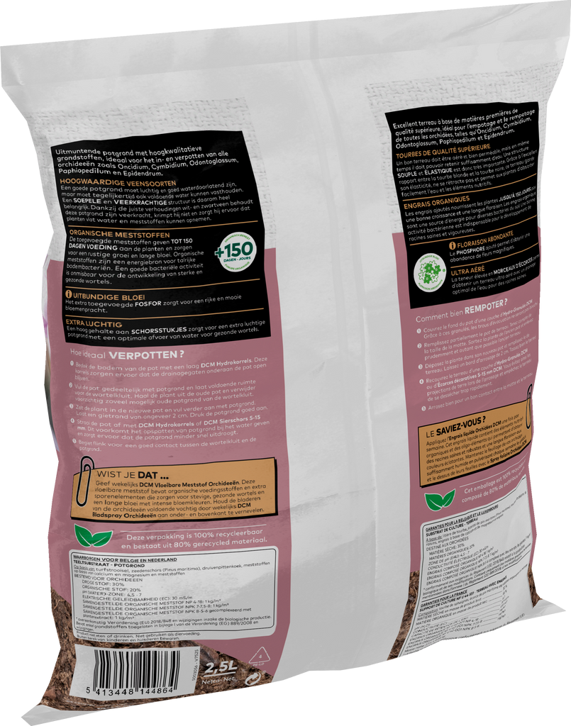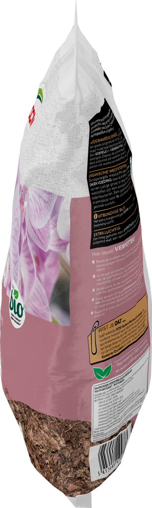 Een hoog gehalte aan schorsstukjes zorgt voor een extra luchtige potgrond met een optimale afvoer van water voor gezonde wortels.