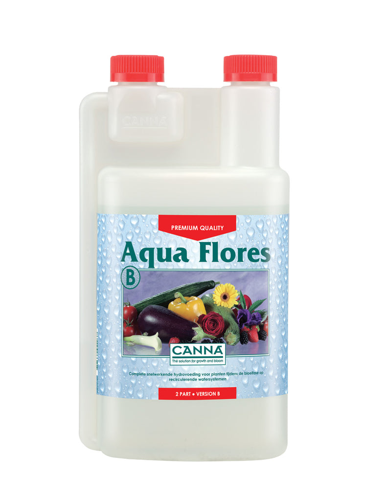 CANNA Aqua Flores is een professionele snelwerkende meststof voor de bloeifase van de plant, speciaal ontwikkeld voor recirculerende systemen. Aqua Flores bevat pH-stabilisatoren, wat betekent dat het constant corrigeren van je pH niet langer nodig is.