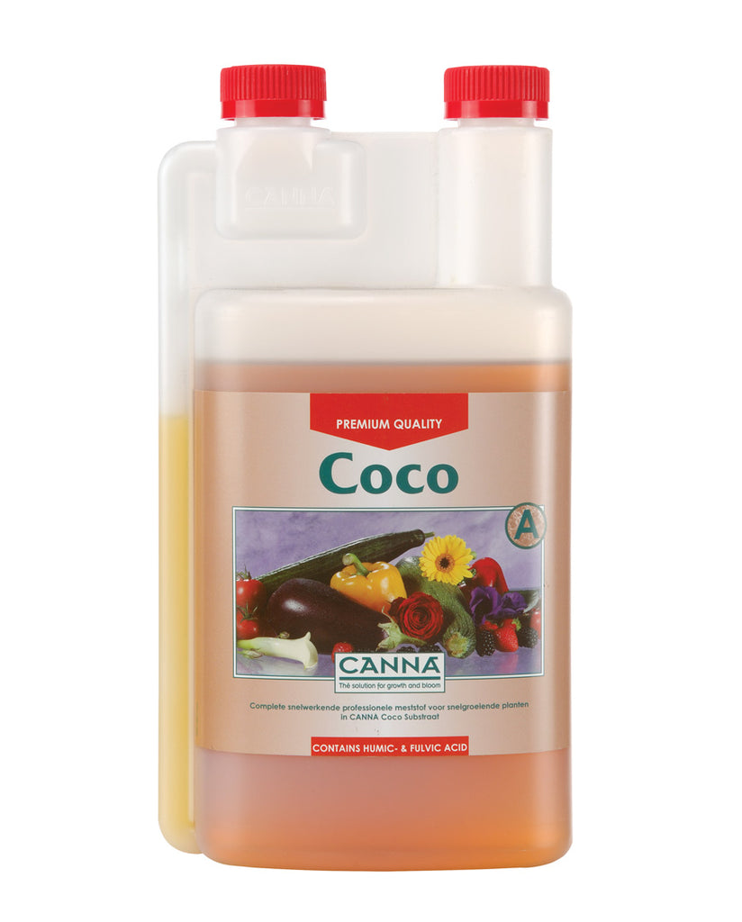 Na jarenlang onderzoek naar potgronden, drainage en bladanalyse is CANNA erin geslaagd als eerste een meststof te ontwikkelen die specifiek is afgestemd op de eigenschappen van kokossubstraten. CANNA COCO is samengesteld uit hoogwaardige mineralen. CANNA COCO bevat natuurlijke chelaten, humine- en fulvinezuren die de plant een optimale opname van voedingsstoffen geven. Kwekers over de hele wereld zijn al jaren enthousiast over de explosieve groei en uitbundige bloei met CANNA COCO.