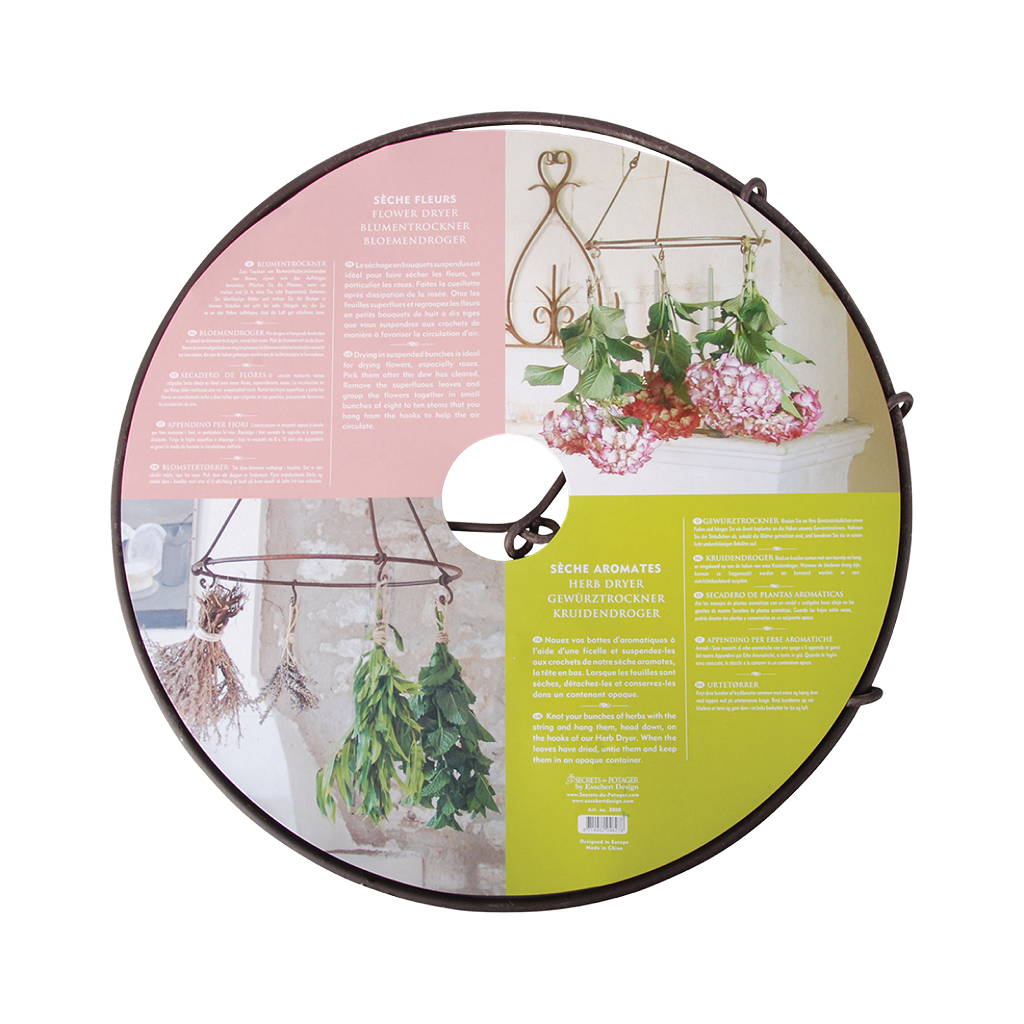 Kruiden zijn heerlijk, en niet alleen vers te gebruiken. Bind verse kruiden samen met een touw en hang ze omgekeerd op aan de haken van deze kruidendroger. Bovendien geldt natuurlijk hetzelfde voor bloemen. Naast het feit dat kruiden en bloemen tijdens het drogen er decoratief uitzien, kunnen deze na het droogproces voor het koken of voor boeketten gebruikt worden.