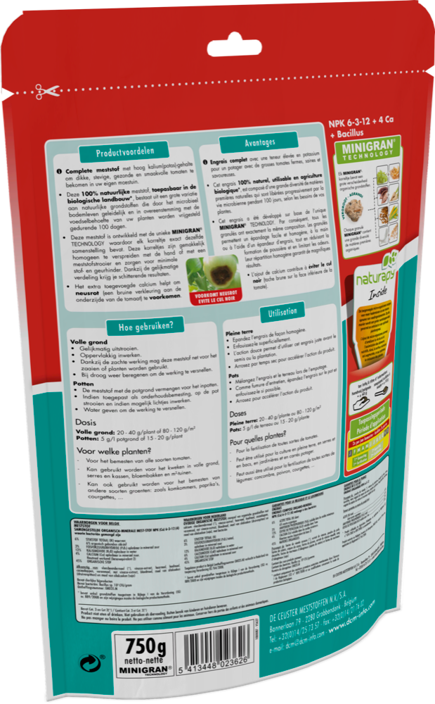 Door de organische samenstelling van DCM tomaten meststof heeft deze een lange werking van 100 dagen zonder uitspoeling.