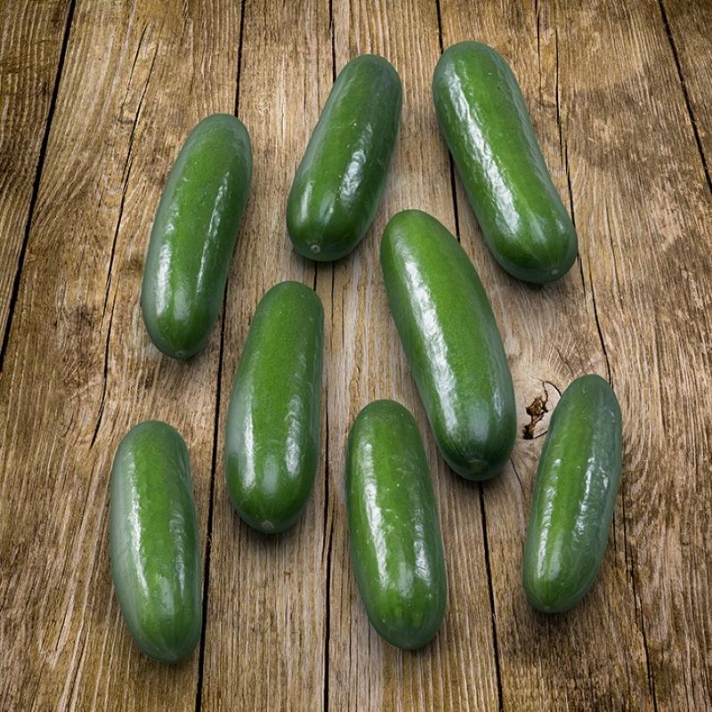 Snack-komkommer 'Kaikura F1' levert per bladoksel 3 tot 5 smakelijke, knapperige vruchten die 5-8 cm groot worden en 30-35 gram wegen.