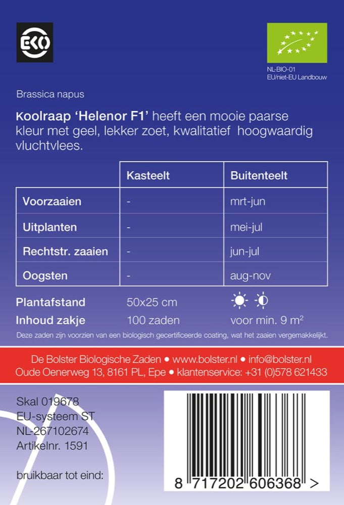 Koolraap 'Helenor F1' maakt weer eens duidelijk waarom dit uiterst gezonde en smakelijke knolgewas onterecht een ‘vergeten groente’ is geworden. Het gele vruchtvlees heeft een uitstekende kwaliteit en een prettige, zachte smaak die onder koudere teeltomstandigheden nog verder wordt verfijnd. Koolraap wordt in de volksmond ook zweden of gele rapen genoemd.