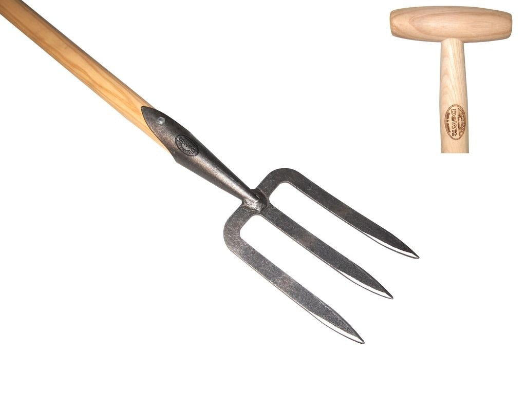 De gesmede 3/4 tands vork is een wat zwaardere uitvoering dan de tuinvork.