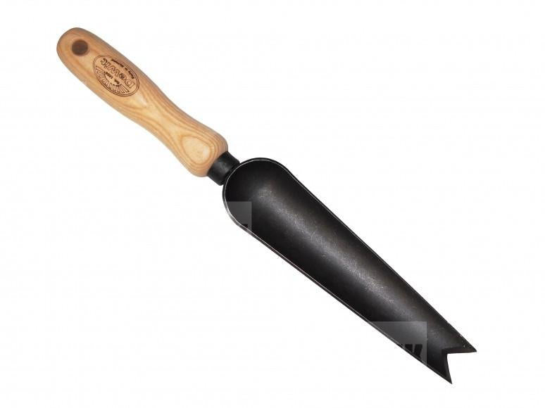 Het De Wit Slangen tong schepje of ook wel onkruid schepje is een kwalitatief stuk tuingereedschap. Door de smalle en scherpe punten kunt u gemakkelijk onkruid uit de grond steken. Met essen houten handvat van 140mm.
