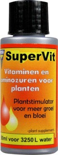 Supervit is een sterk geconcentreerde oplossing van plantaardige actieve vitale stoffen die in de natuur worden geproduceerd door schimmels. Supervit vervangt de functie van schimmels en maakt de plant minder afhankelijk van klimatologische omstandigheden. De plant kan, met dezelfde lichtintensiteit, het aangeboden licht beter verwerken (meer fotosynthese). Dit resulteert in een sterkere groei en een vollere bloei en een goede gezondheid van de plant. Ook worden er sterke bloeiknoppen gevormd.
