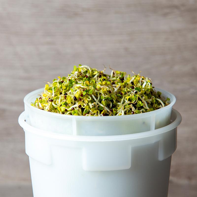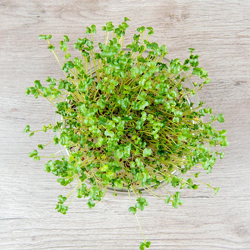 Na 8 tot 12 dagen zijn de kiemplantjes 4 tot 6 cm lang en kunnen ze geoogst worden. Knip ze met een schaar net boven het rooster af.