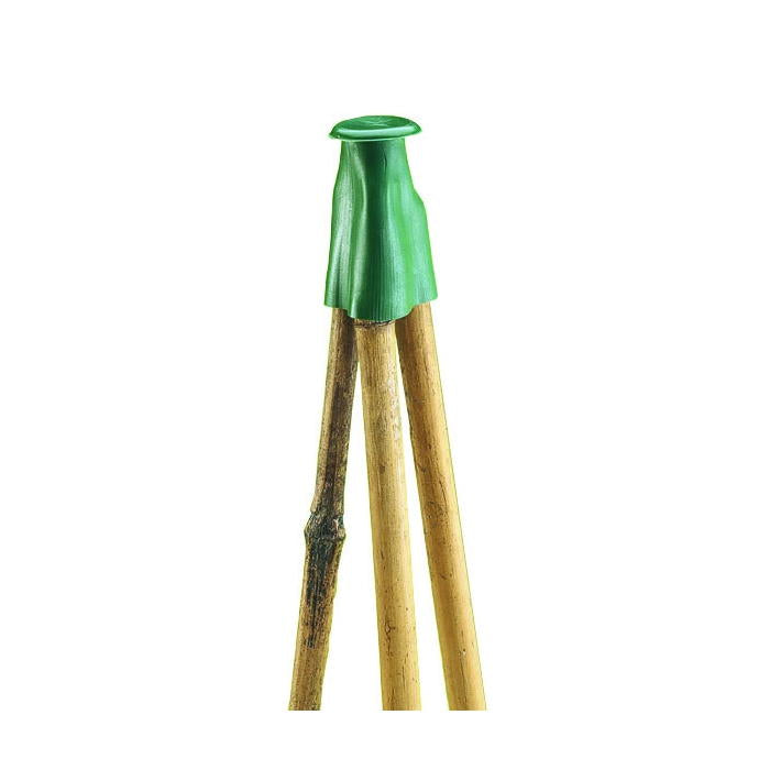 De stokklem pyramide is geschikt om 3 tonkinstokken tot Ø 12 mm vast te klemmen en aan elkaar te verbinden, waarbij de stokken naar elkaar toelopen tot één punt bovenin.