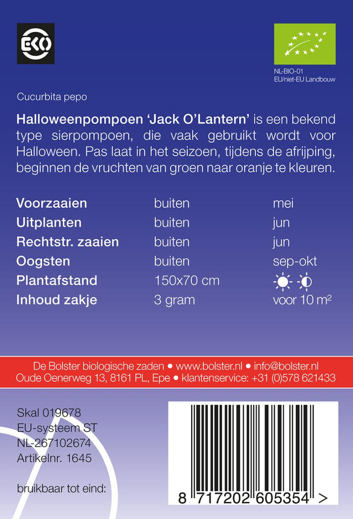 De Bolster Halloweenpompoen 'Jack O’Lantern'