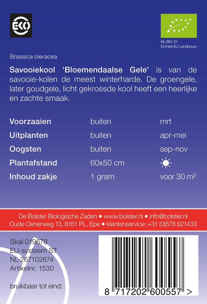 Bloemendaalse Gele' is een Savooiekool met een zachte smaak. Deze Savooiekool is winterhard en kan lang in de tuin blijven staan. Het heeft eerst een groengele kleur en later goudgeel. Eén zakje is voor circa 30m2, en de plantafstand bedraagt 60x50 cm.