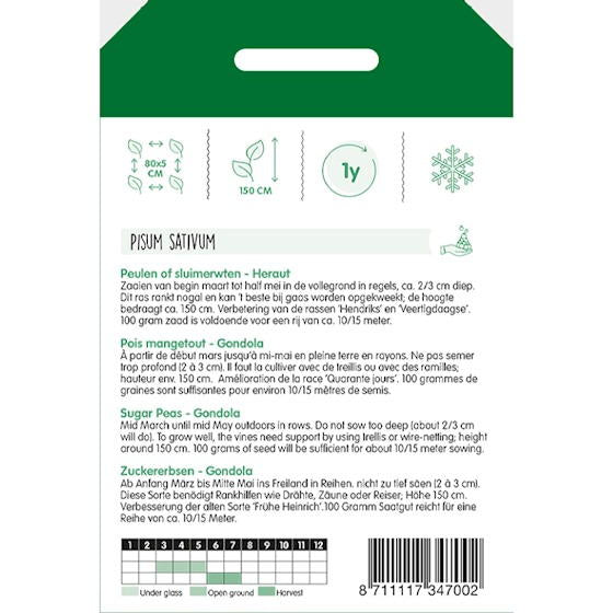 100 gram zaad is voldoende voor een rij van ca. 10/15 meter.