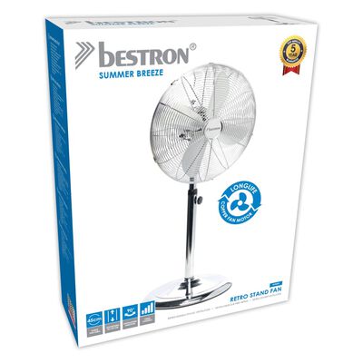 Voeg comfort en stijl toe aan iedere kamer met de DFS45S staande ventilator van Bestron. De ventilator is gemaakt van roestvrij staal, wat hem een luxueuze look en feel geeft.